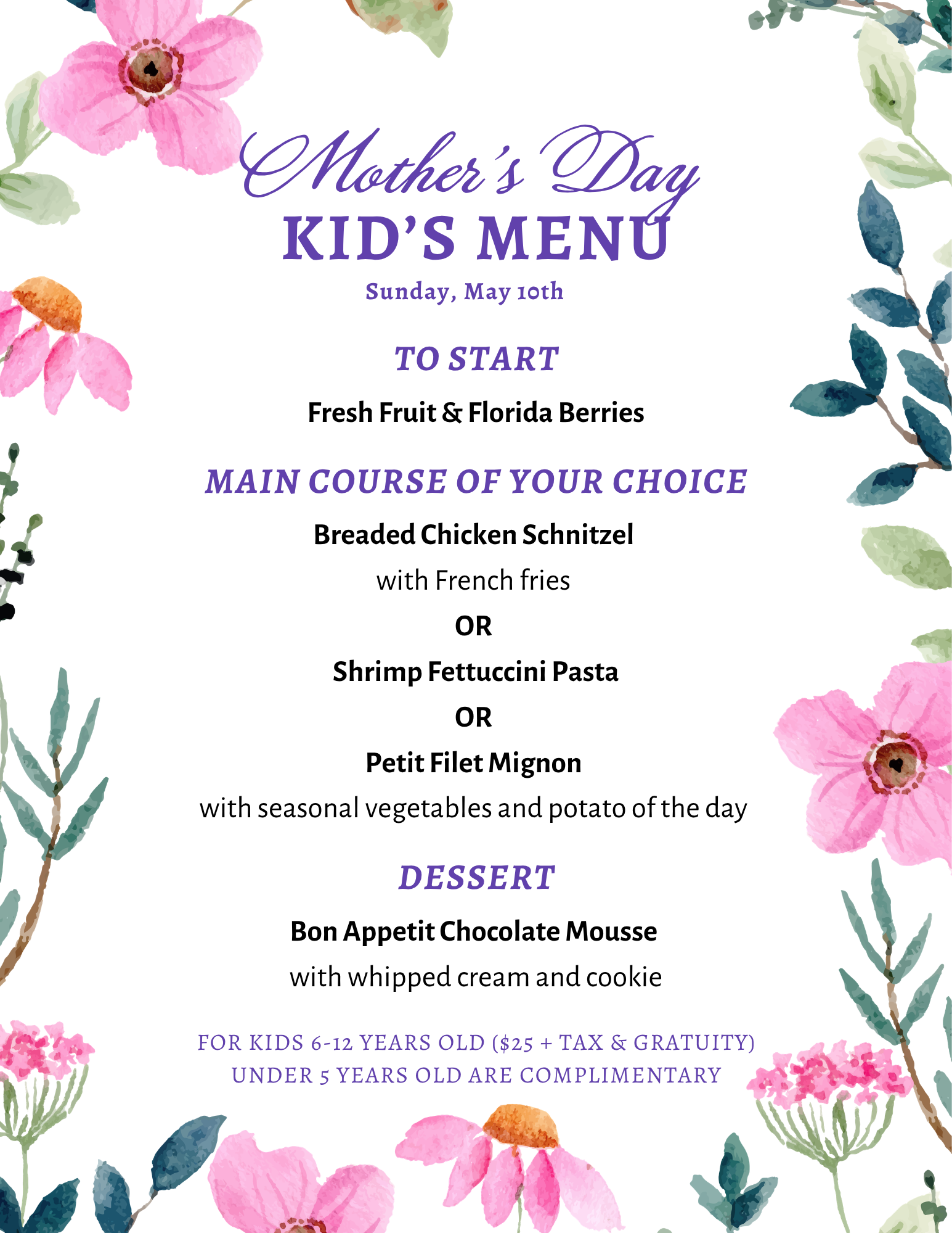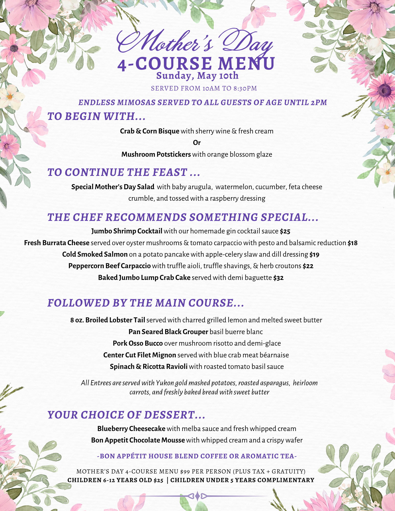 Complimentary Endless Mimosa will be offered for all guests to start the Mother’s Day 4-Course Menu experience until 2PM